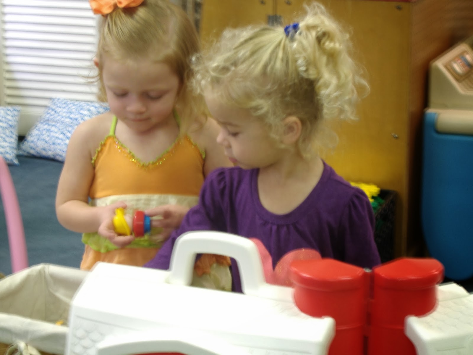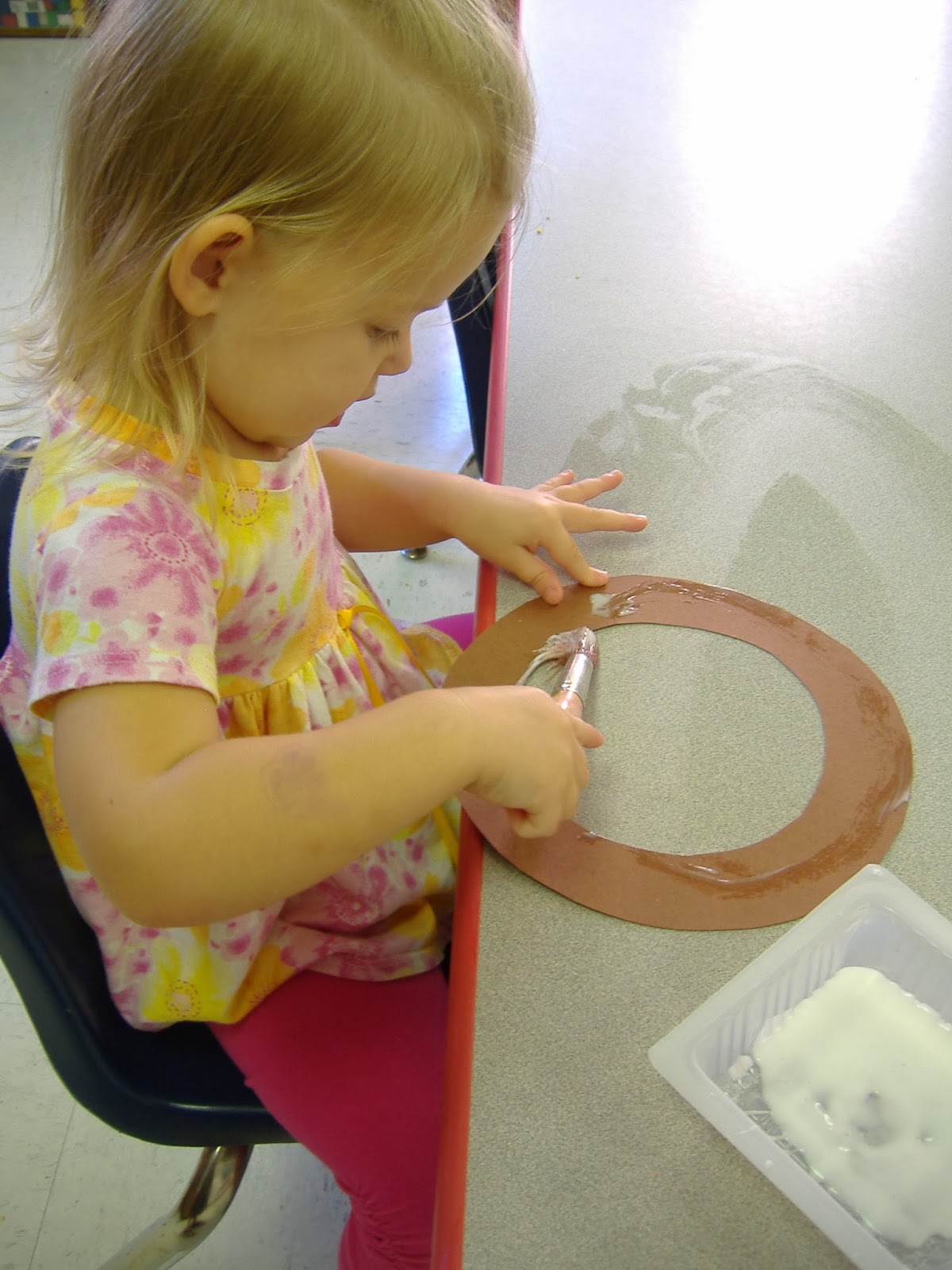 On Wednesday, the children also made an "apple pie" snack. They were each given a graham cracker in a baggie, that they had to crush. Then I gave them some cooked apples in a cup and they added their crushed graham cracker. Finally, I topped it off with whipped cream, hmmm....