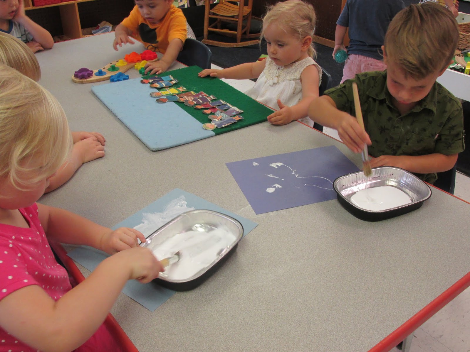 Snack time. The children are learning to wash their hands and say a blessing before we eat our snack. They are also learning to put their trash away when they are done.