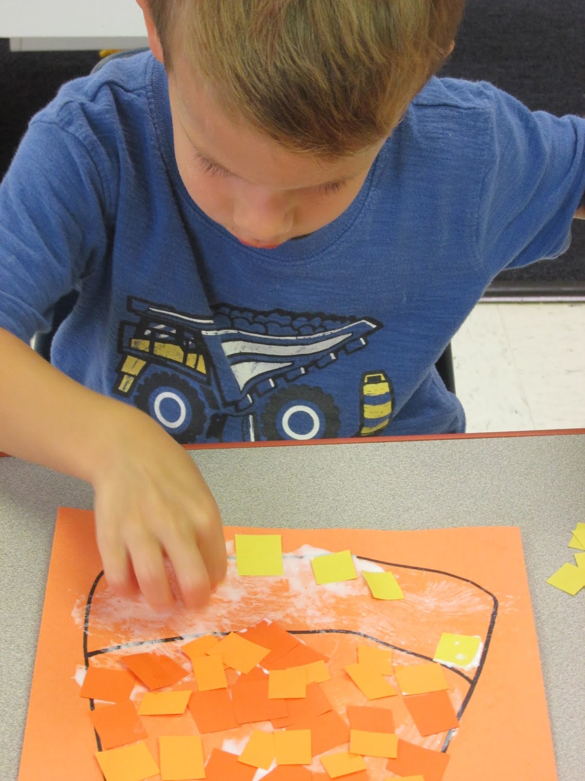 This week, we started working on painting black cats. I had them paint at the easel with black paint mixed with a little glue. Once they had painted as much as they wanted, I gave them two green